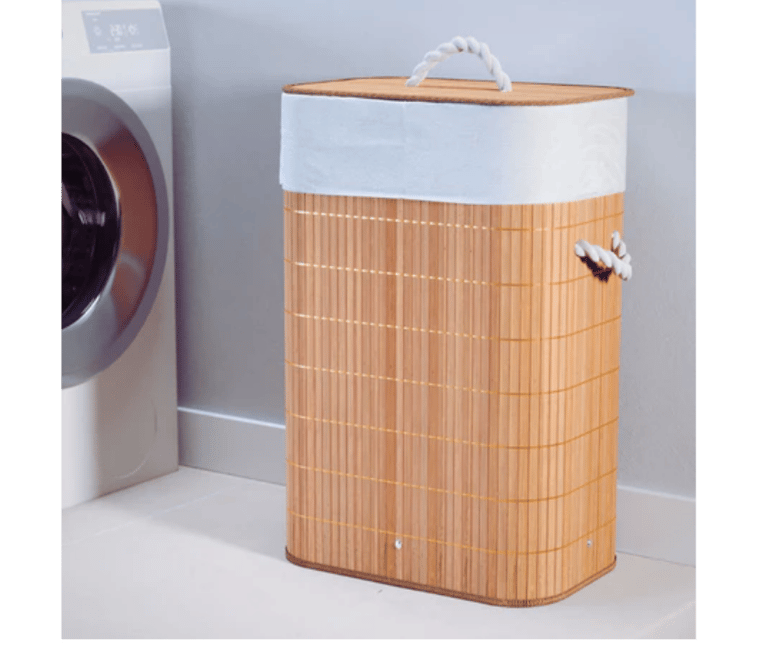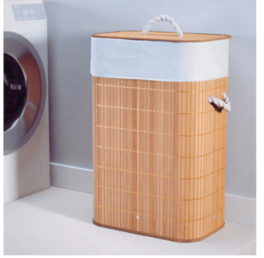Cesto De Roupa Suja Bambu 72 Litros Lavanderia Com Tampa e Alças Forrado Grande Organizador Banheiro