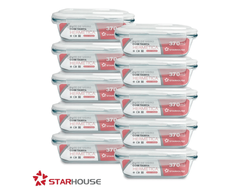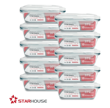 Kit 10 Potes Vidro 370ml Hermético Marmita Forno Refratário Star House